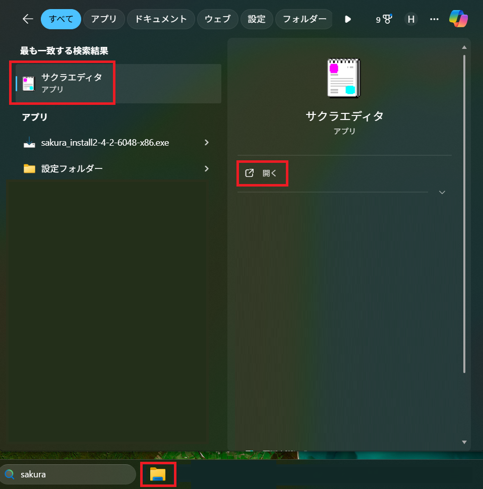 Windows の検索欄に 「サクラ」または「sakura」 と入力すると簡単に見つかります。