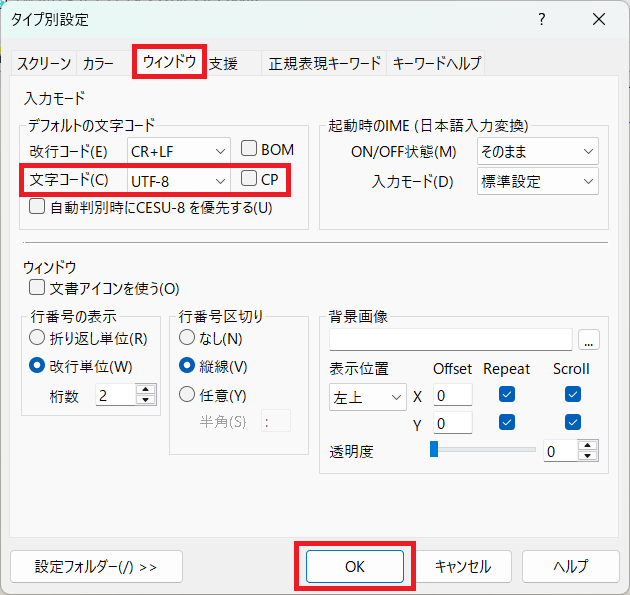 それでは、サクラエディタでの設定方法を見ていきましょう。